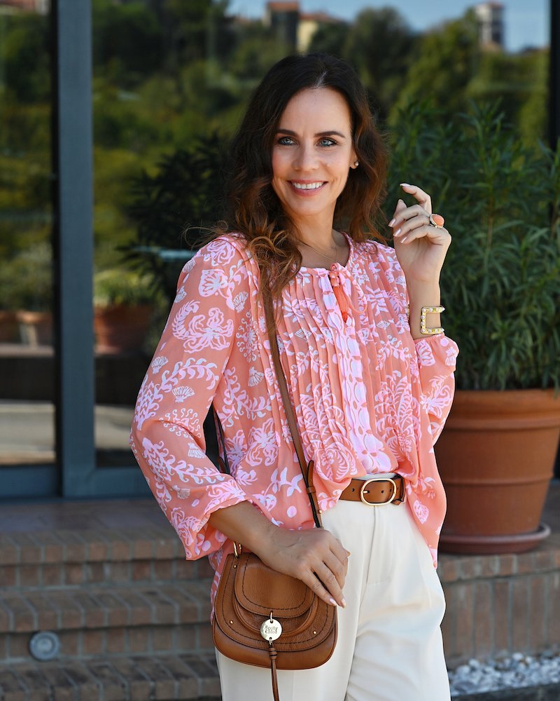 - Top: Silk blouse by Lilly Pulitzer