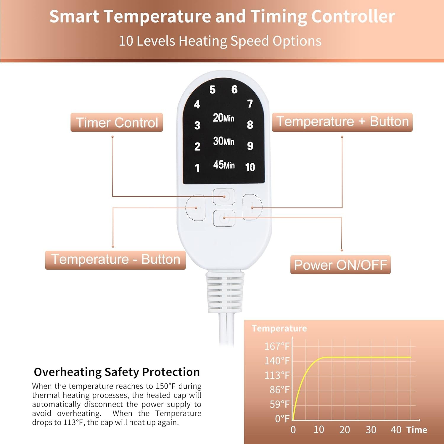 Transform your hair care routine with our High-Quality Heat Hair Steamer Cap! Crafted from durable, flame-retardant materials, this cap combines functionality and safety. In just one minute, it heats to an optimal 65°C (150°F) across 10 heat levels and 3 timer settings, allowing you to customize your experience for the perfect at-home salon.