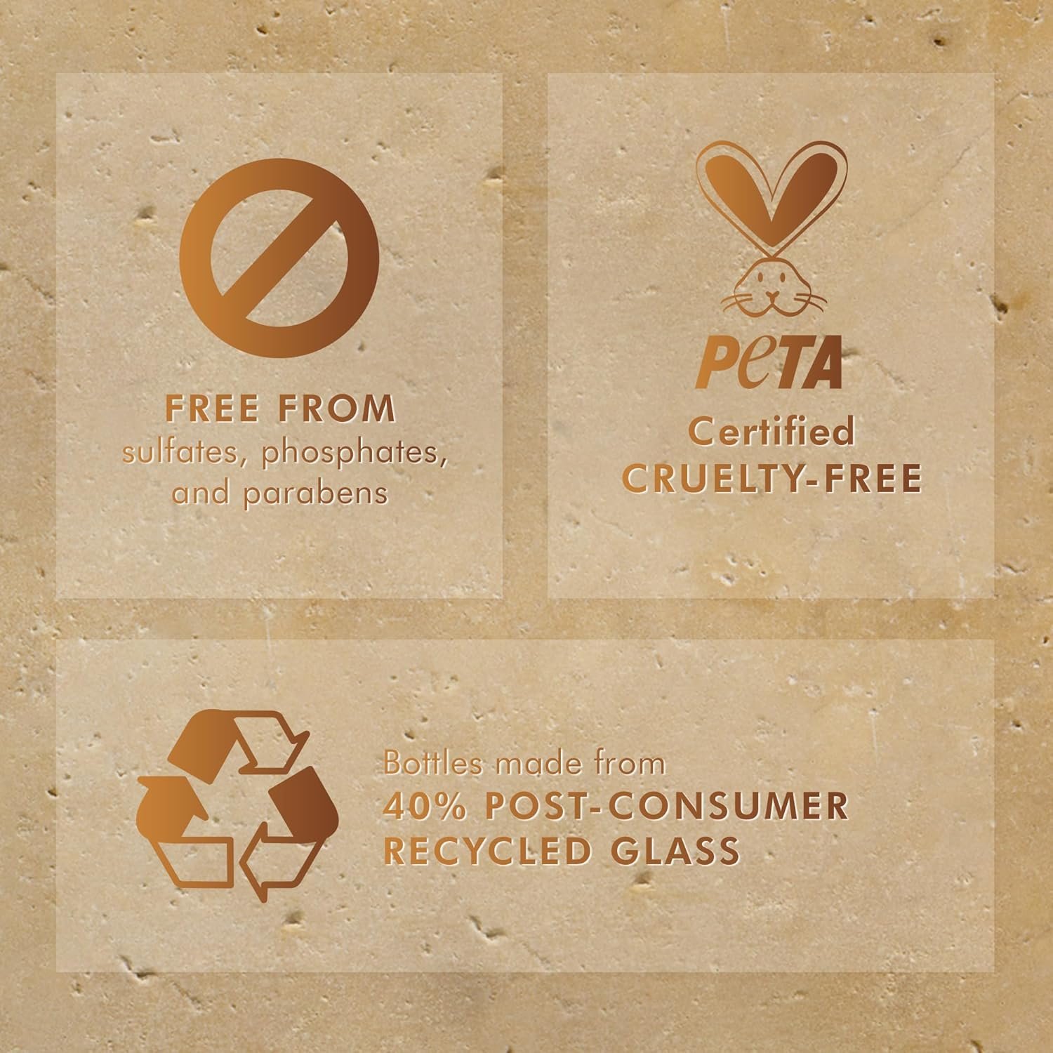 - Sustainability: 100% recyclable bottle made with 40% recycled glass.